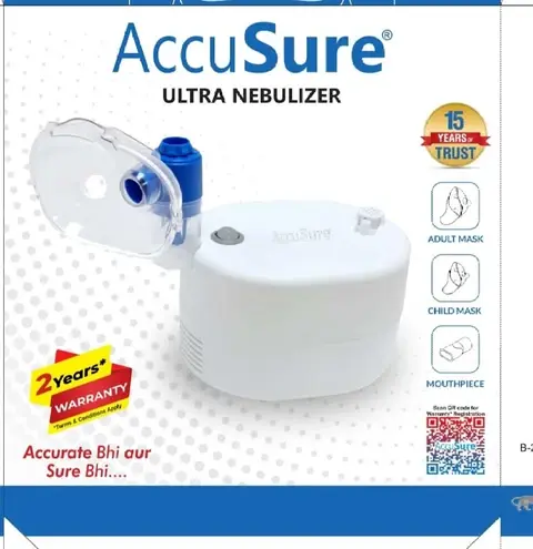 The AccuSure Ultra Nebulizer is an advanced medical-grade aerosol therapy device designed for fast, effective, and consistent medication delivery in the treatment of asthma, COPD, bronchitis, and other respiratory conditions. It converts liquid medicine into a fine mist for deep lung absorption, providing instant and lasting relief.